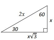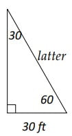 #4. A ladder leans against a wall forming a 60ᵒ angle between the ground and the ladder. If the bottom of the ladder is 30 feet away from the wall, how long is the ladder?