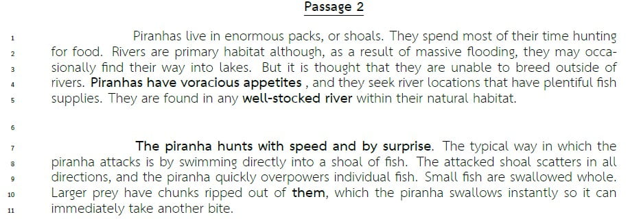 #10. “The piranha hunts with speed and by surprise ” (line 7) because it hunts ………….