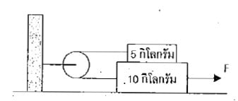 #3. จากรูป จงหาแรง F ที่ทำให้วัตถุเริ่มขยับพอดี ถ้าทุกผิวสัมผัสมีสัมประสิทธิ์ความเสียดทานเท่ากับ 0.2