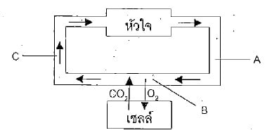 #8. จากแผนภาพการไหลเวียน A, B และ C คือเส้นเลือด ใดตามลำดับ ( → คือการไหลเวียนของเลือด)