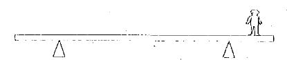 #11. คานสม่ำเสมอมีมวล 10 กิโลกรัม ยาว 6 เมตร วางอยู่บนฐาน A และ B ซึ่งห่างจากปลายทั้งสองข้างด้านละ 1 เมตร มีชายคนหนึ่งมวล 80 กิโลกรัม ยืนอยู่บนคาน ดังรูป จงหาว่าเขาต้องยืนห่างจากปลายคานด้านฐาน 8 เป็น ระยะเท่าไรคานจึงจะเริ่มกระดกพอดี